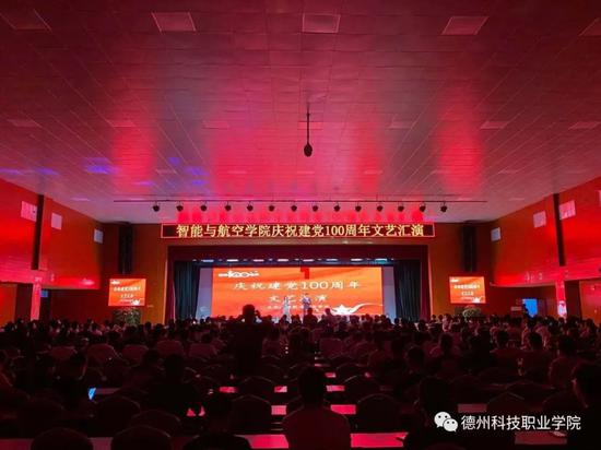 德州科技职业学院为喜迎中国共产党成立100周年,展现智能与航空学院学子青春向党、昂扬向上的精神风貌,6月17日晚,学院智能与航空学院在大禹大讲堂隆重举行庆祝建党100周年文艺汇演。