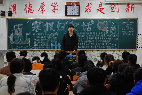 城市轨道交通运营管理1731班孟雨晓讲述了寒假参加社会实践所懂得的道理和知识。供电1732班魏明钧分享了在济南火车站参加春运志愿服务活动的经历,呼吁同学们投入到志愿活动中,以提升大学生的社会责任感,筑牢社会主义核心价值观。电气1732班高旭东表示,社会实践是大学生理论联系实际的有效途径,通过假期调研进一步感受到人民生活水平的显著提高,幸福感、获得感明显增强。在交流家乡春节习俗时,电信1732班褚雪艺表示,风俗习惯既要传承优秀传统又要与时俱进。今年她所在的城市禁放烟花爆竹,虽然少了烟花爆竹的喧闹,但却多了诸如一家子走入影院看一部贺岁片,感恩母爱积极参与“牵妈妈的手”活动等新的形式和内容。中国年的真正魅力本就不在外表,而在团圆、祥和、重视家庭的内里。在分享收获的同时,同学们也普遍表现出对党的十九届三中全会、山东省全面展开新旧动能转换重大工程动员大会、平昌冬奥会、2017年度“感动中国”人物评选等国内外时事政治和社会热点的关注。
