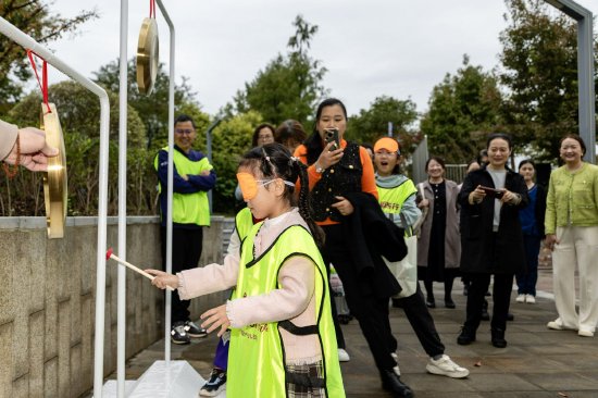 雨过天晴,阳光透过树叶,洒在古美公园的每一个角落,为这个特别的日子增添了几分暖意。公园里,“为爱而行 City Walk”主背景前,参与活动的家庭正有序地签到、领取集章攻略卡和能量补给包,为即将开启的亲子 City Walk之旅做着准备。