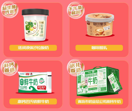 临近传统春节,消费者计划着购买年货用于走亲访友,新希望琴牌乳业在此时上市多款新品,适应多种消费场景。比如山东首款“液体沙拉”酸奶(活润4蔬3果液体沙拉酸奶),将传统液体沙拉与酸奶融合,填补了省内品牌该细分领域的空白;添加了真实云南小粒咖啡的咖啡酪乳,治愈你的下午茶轻松时刻;原生高钙达120mg/100g的高钙巴氏鲜牛奶补充了市场上袋装鲜奶的“高钙”产品空缺;与红色青岛奶业公司组成CP的绿色奶业总公司每盒含400mg钙,高钙好营养,适合套装送礼,在青岛市区及外埠市场均有销售,健康且有心意。