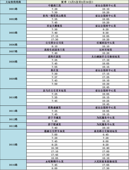 2022年5月5日起,济宁市公交集团对所属大站快车线路执行夏季运营时间。