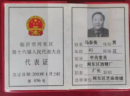 1998年,河东区酒精厂厂长马春亮当选河东区第15届区人大代表,2003年再次当选。