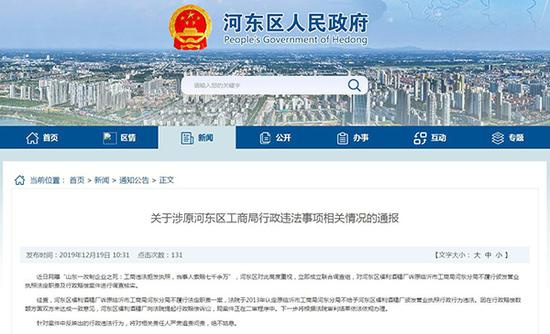 12月19日上午,山东省临沂市河东区委宣传部在其公众号“临沂河东”上对上述报道发布通报称,“针对案件中反映出的行政违法行为,将对相关责任人严肃追责问责,绝不姑息。”