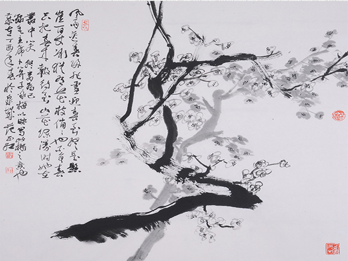 本篇的诗词是国画《咏梅》里面的题诗。就如诗文中所说:经春曾几度?老树著新花。
