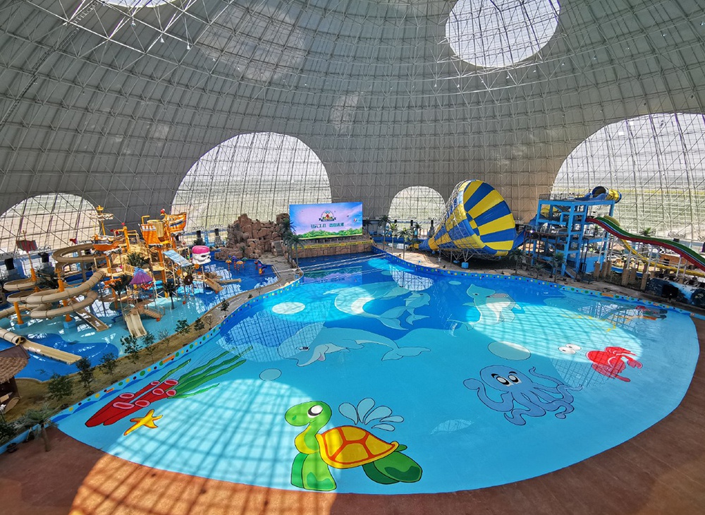 圣哥帝湾温泉水世界,中国首个以柬埔寨吴哥窟文化为主题的四季恒温的室内水上乐园,配套二十余个温泉汤池。圣哥帝湾温泉水世界项目为一个穹顶形建筑联合体,51米高的玻璃框架与天棚完美结合,构建巨大穹顶,创造出令人兴奋的室内游乐空间。2万多平米的建筑面积,半球形的立体空间,呈现出一个水上娱乐的梦幻王国。里面主要包含彩虹炫速、魔幻深渊、梦幻水城、深海之浪、极速滑翔、极速漂流、童趣王国、玻璃栈道等十余种项目。