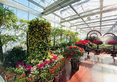 占地10000多平米的梦幻花房,是集特色精品花卉、盆景、花卉超市等于一体的,以花为媒的综合农业观赏园。温室内偌大的观赏空间,惬意舒适、贴近自然,体验生活的诗意。花房引进蝴蝶兰、满堂红、一品红、九里香、吸财树、沙漠玫瑰、人参榕、金枝玉叶、金玉满堂等千余种特色花卉,造型各异,姿态万千。既有常见的温带植物,也有一些热带植物和沙漠植物;鲜花观赏区与内部休息区、农耕文化区相辅相成,构成美景与休闲的结合,优雅和惬意的共融。